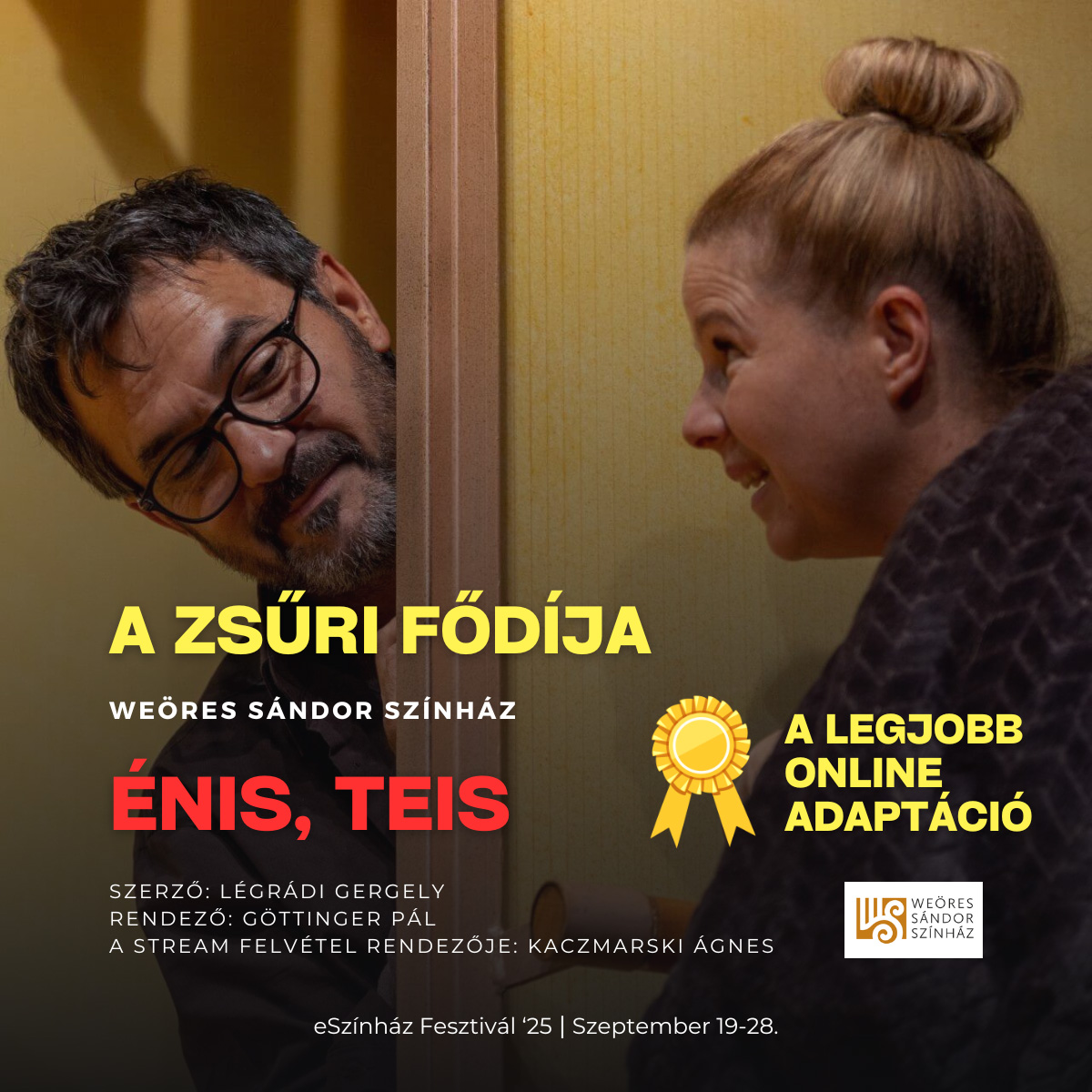 - A legjobb online adaptáció, azaz a zsűri fődíját a Weöres Sándor Színház alkotása, az Énis, teisnyerte (szerző: Légrádi Gergely, rendező: Göttinger Pál, az online adaptáció, azaz a felvétel rendezője: Kaczmarski Ágnes).