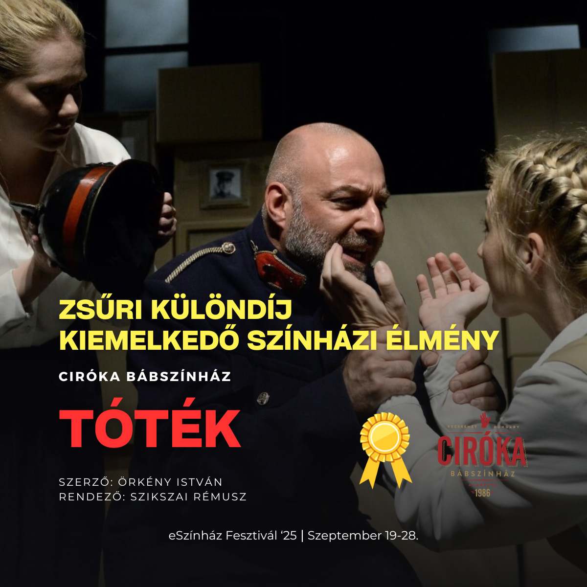 - a második különdíjat a zsűri a kiemelkedő színházi élményért a Ciróka Bábszínház: Tóték című előadásának ítélte oda (szerző: Örkény István, rendező: Szikszai Rémusz).