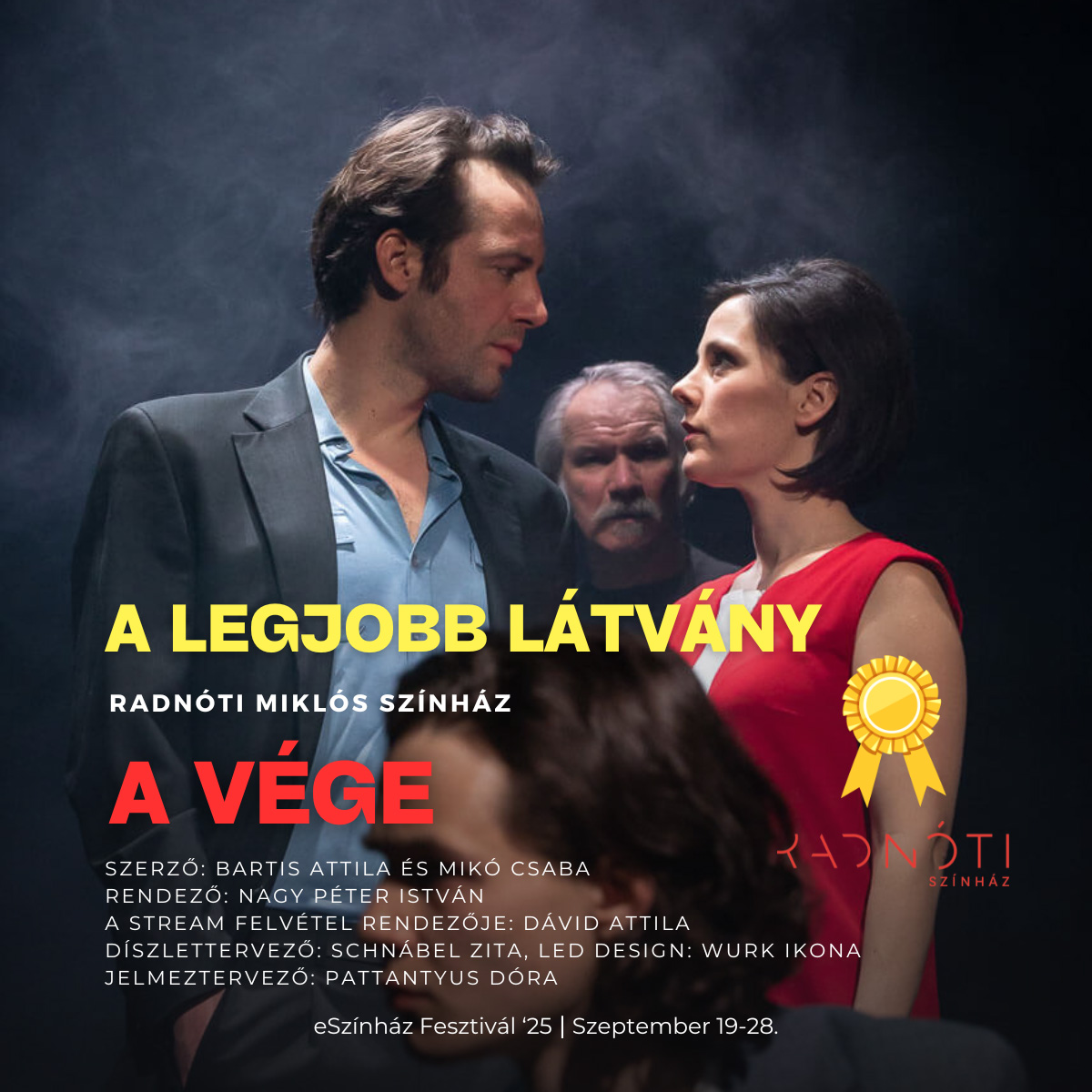 - A legjobb látvány díját a zsűri a Radnóti Miklós Színház produkciójának, A vége című előadásnak ítélte oda (Bartis Attila azonos című regénye alapján színpadra alkalmazta: Mikó Csaba, díszlettervező: Schnábel Zita, LED design: Wurk Ikona, jelmeztervező: Pattantyus Dóra, rendező: Nagy Péter István).