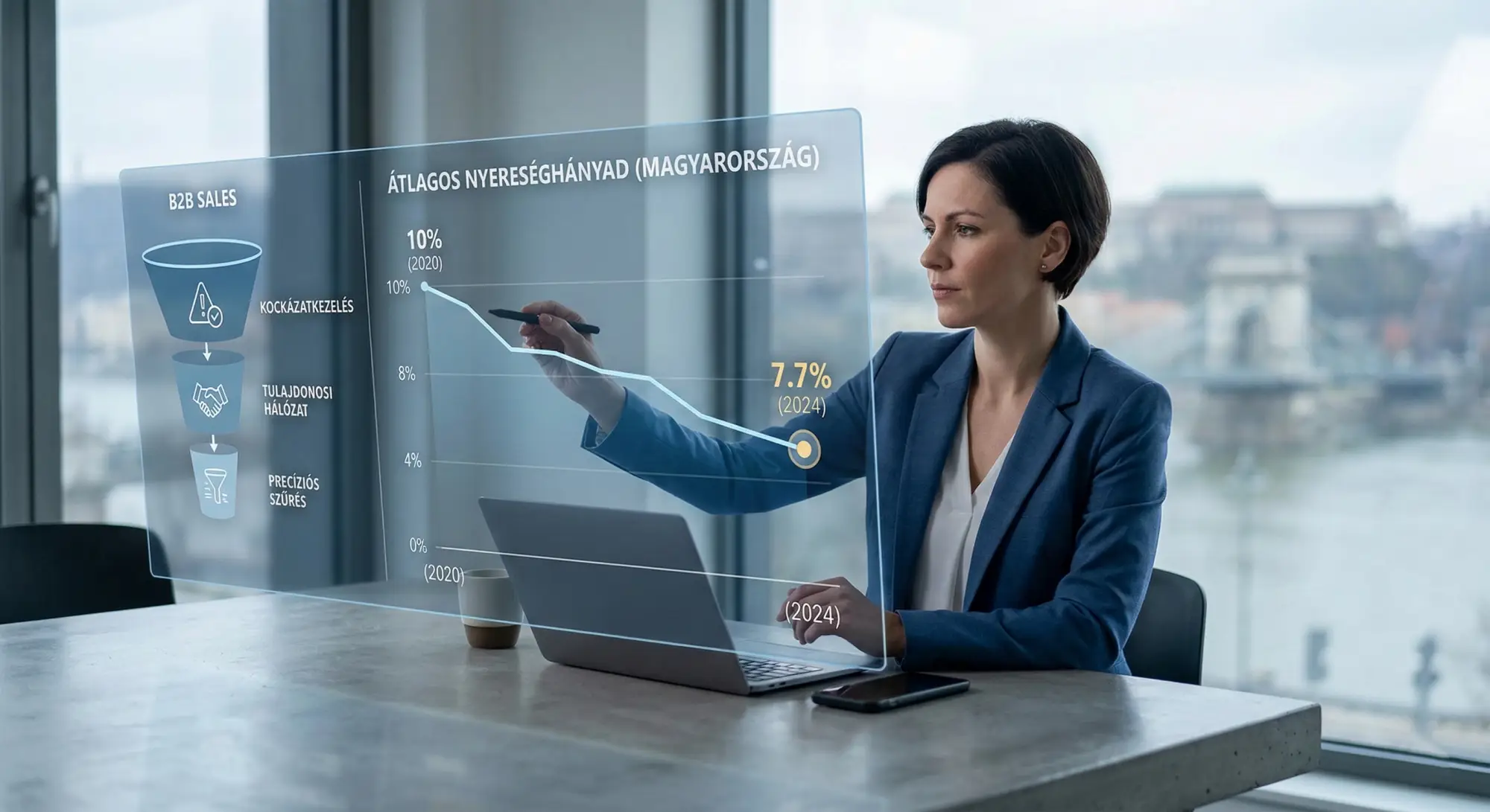 - Nyereséghányad: Egy vállalkozás árbevételéhez viszonyított nyereségének aránya. A cikkben említett 7,7 százalékos átlagos nyereséghányad a magyar társas vállalkozások 2024-es átlagát jelöli.